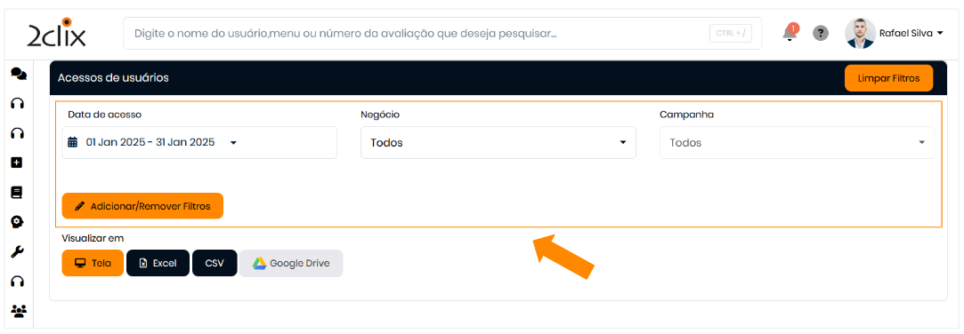 Utilize os filtros disponíveis na tela para personalizar sua análise e exibir os resultados desejados.