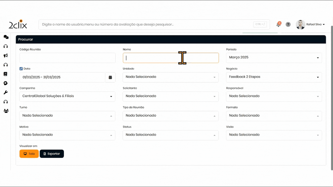 Utilize os filtros para localizar a reunião desejada e clique na opção Tela para visualizá-la.