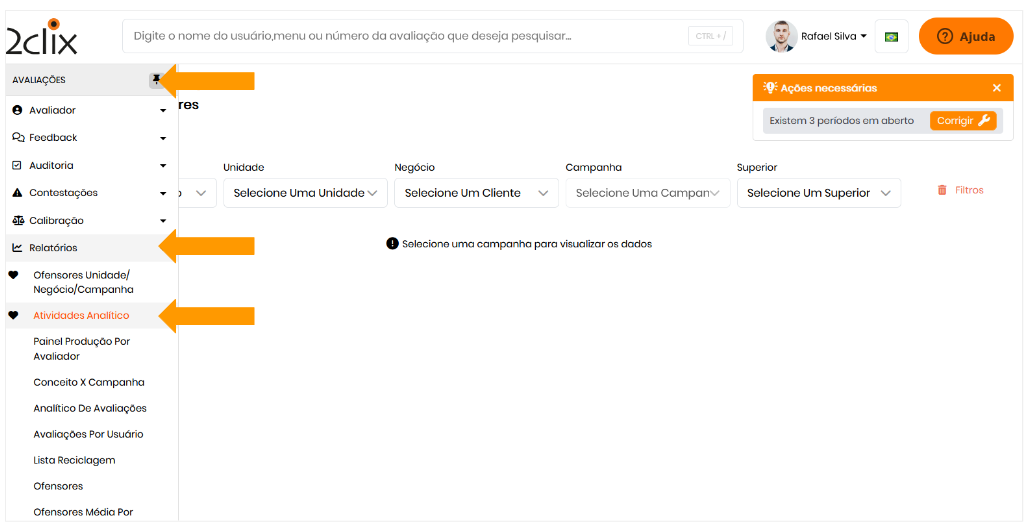 Avaliações > Relatórios > Atividades Analítico.