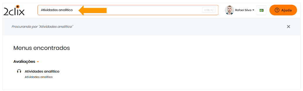 Se preferir, use o campo de busca na plataforma. Digite "Atividades Analítico" e selecione o menu correspondente para ser direcionado diretamente à página do relatório.