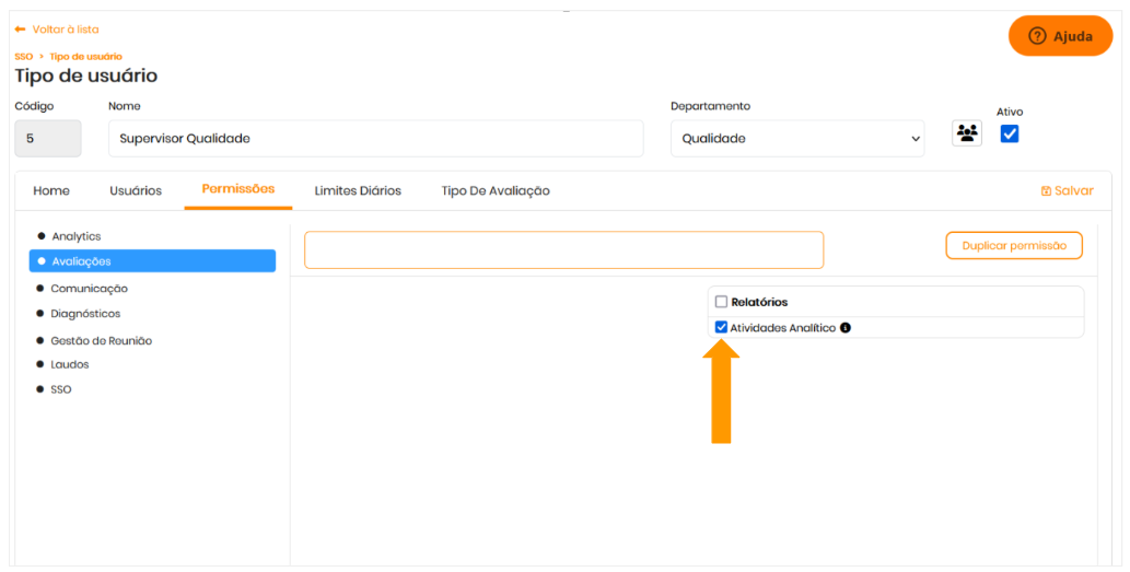 - Para acessar esse relatório, é necessário ter a permissão Atividades Analítico.