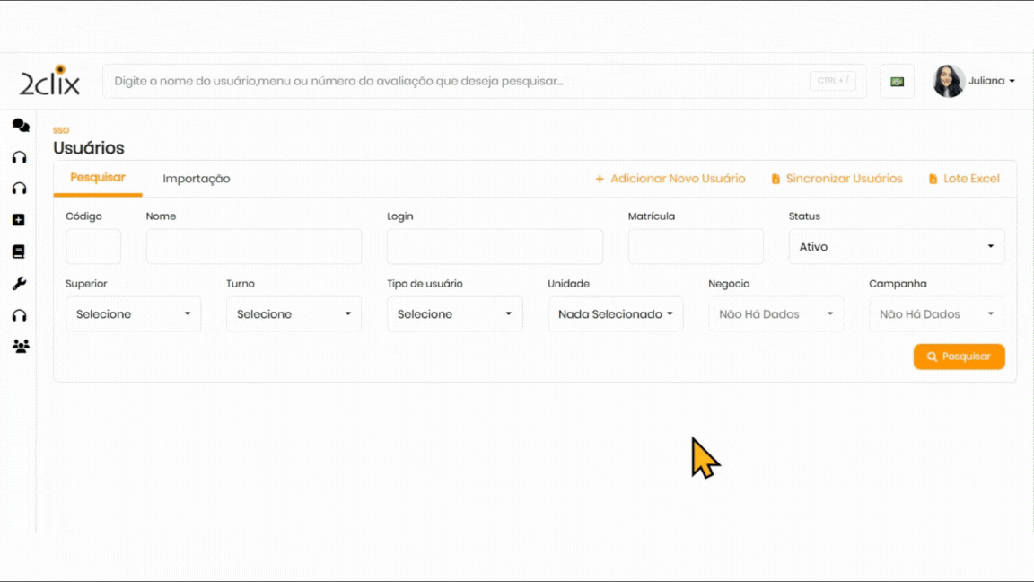 No menu lateral esquerdo, acesse: SSO > Cadastros > Usuários.