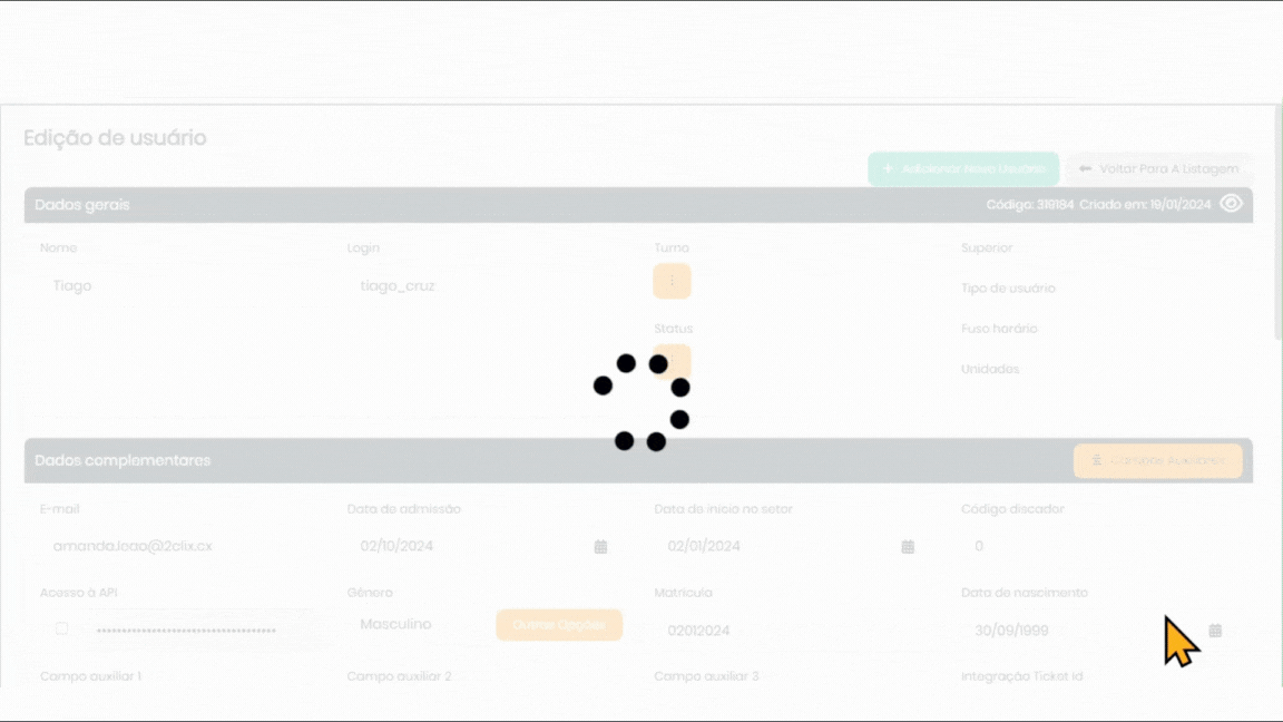 Uma funcionalidade essencial para rastrear alterações no cadastro dos usuários é o Histórico de Edições, acessado pelo ícone do olho