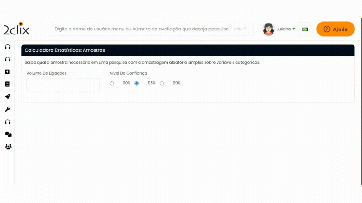 A Calculadora Estatísticas: Amostras é uma ferramenta estatística desenvolvida para medir o nível de confiança de uma avaliação, considerando o volume de ligações realizadas por um avaliado.