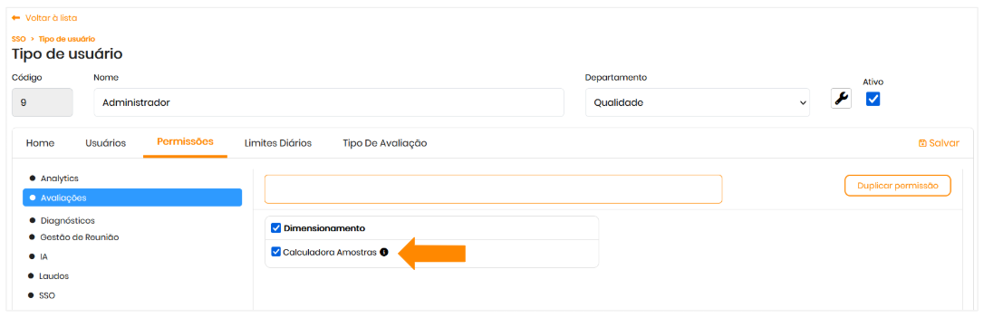 Para acessar esta funcionalidade, o usuário deve ter a permissão habilitada: