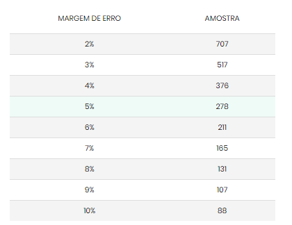 O gráfico ilustra a relação entre o tamanho da amostra (Eixo Y) e a margem de erro (Eixo X).