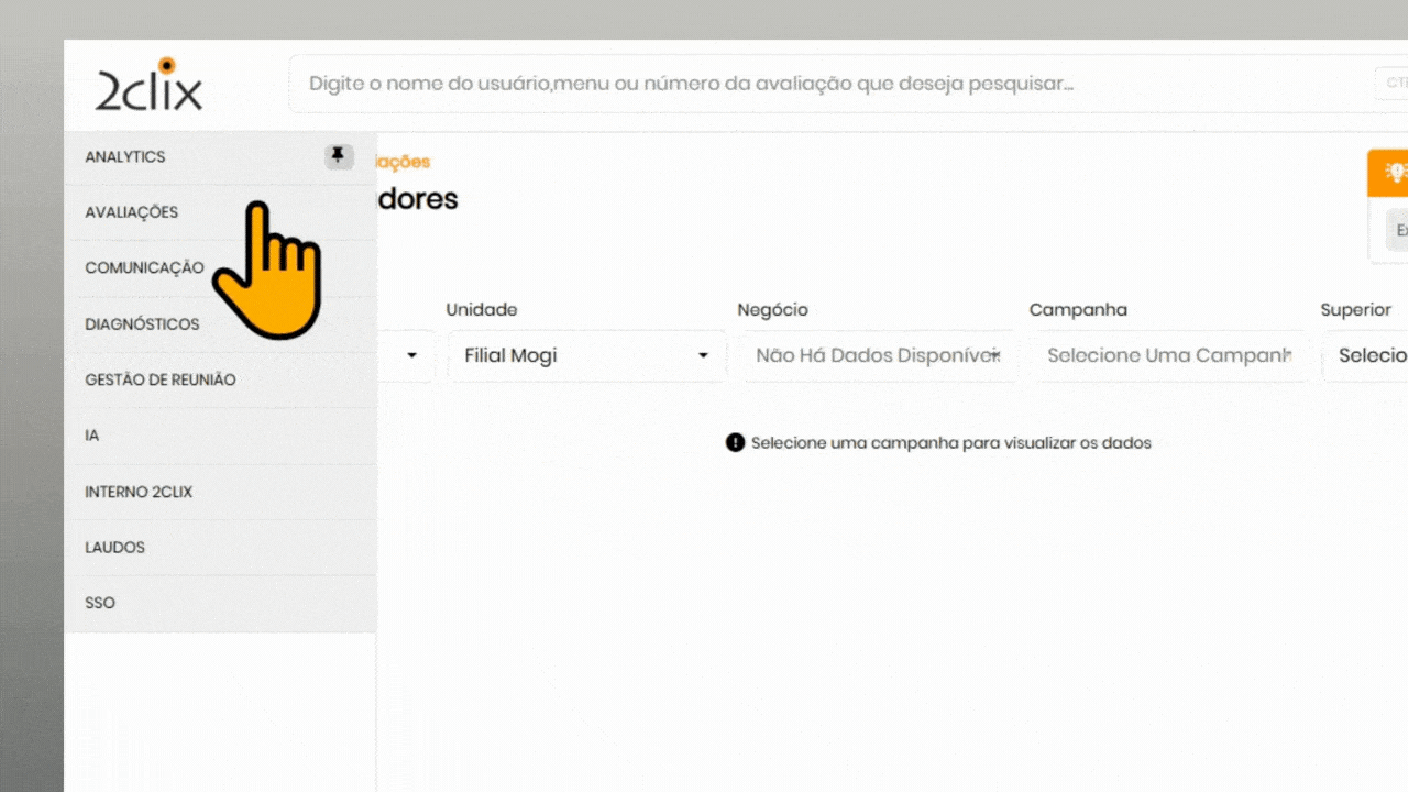 No menu lateral esquerdo, navegue até: Avaliações > Dimensionamento> Calculadora - Amostras.