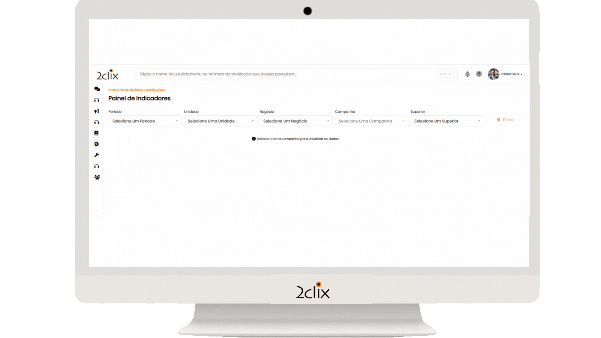 O uso completo do campo de busca permite navegar com mais agilidade, localizar rapidamente avaliações, relatórios e funcionalidades, além de acessar históricos e informações relevantes com poucos cliques.