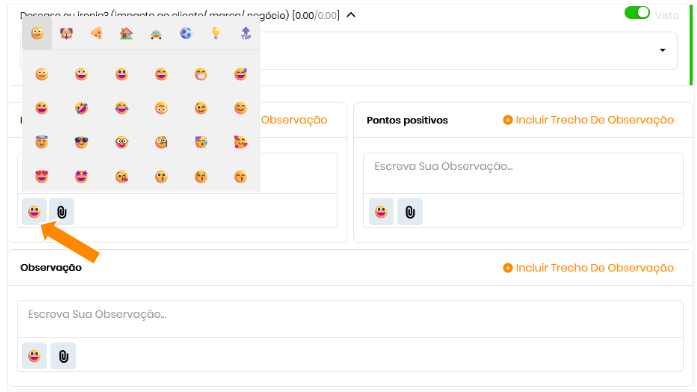 - Clique no ícone de emoji durante o preenchimento da avaliação;