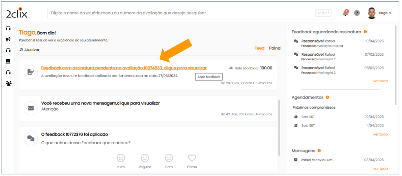 Após o aceite do superior, será exibida a opção: Assinar Feedback