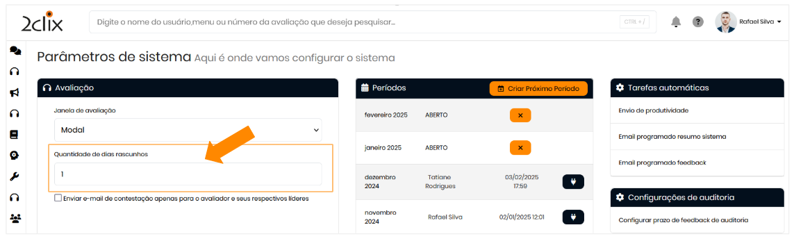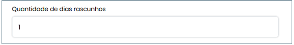 Na página de configuração, localize o campo "Quantidade de dias para rascunhos".