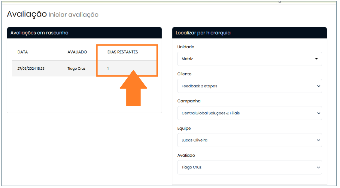Se você deseja verificar as avaliações que ainda estão em rascunho, siga estes passos: