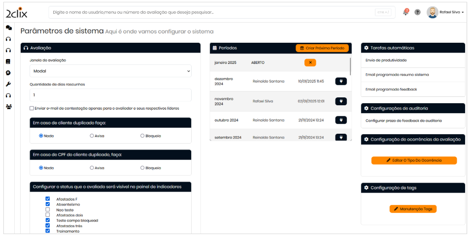 3. Localize o painel "Configuração de Tags": Este painel permite criar, gerenciar e aplicar tags nas avaliações. As tags facilitam a organização e busca de informações.