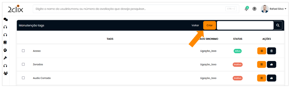 As tags cadastradas durante as avaliações podem ser gerenciadas para otimizar as buscas no relatório de Tags. Este recurso permite criar, organizar e administrar palavras-chave que facilitam a categorização e localização de informações.