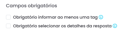 - Informar ao menos uma tag: define a obrigatoriedade de inserção de pelo menos uma tag durante o preenchimento.
