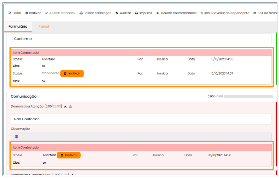 ⚠️Atenção ao prazo de feedback automático com essa funcionalidade, pois se aplicado o feedback a opção de contestação não fica mais disponível, seguindo a regra.