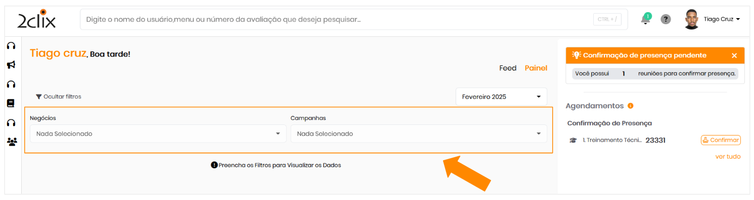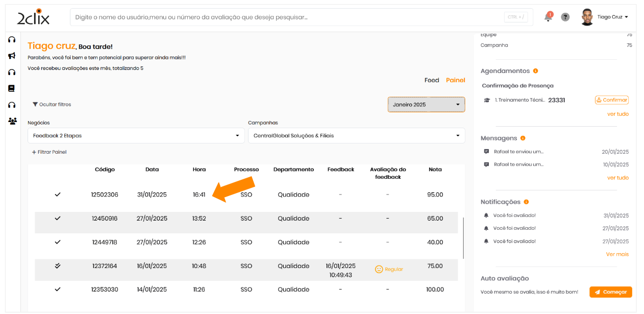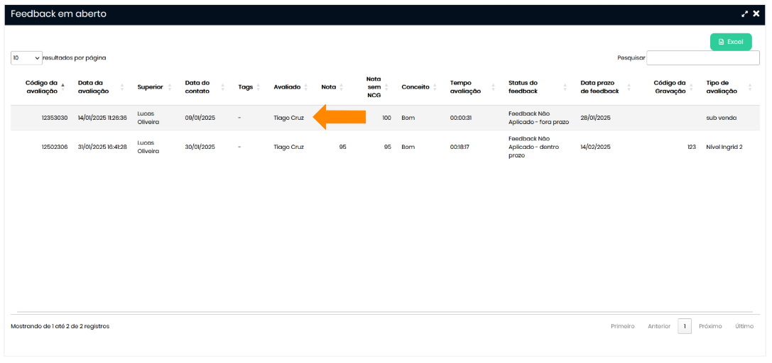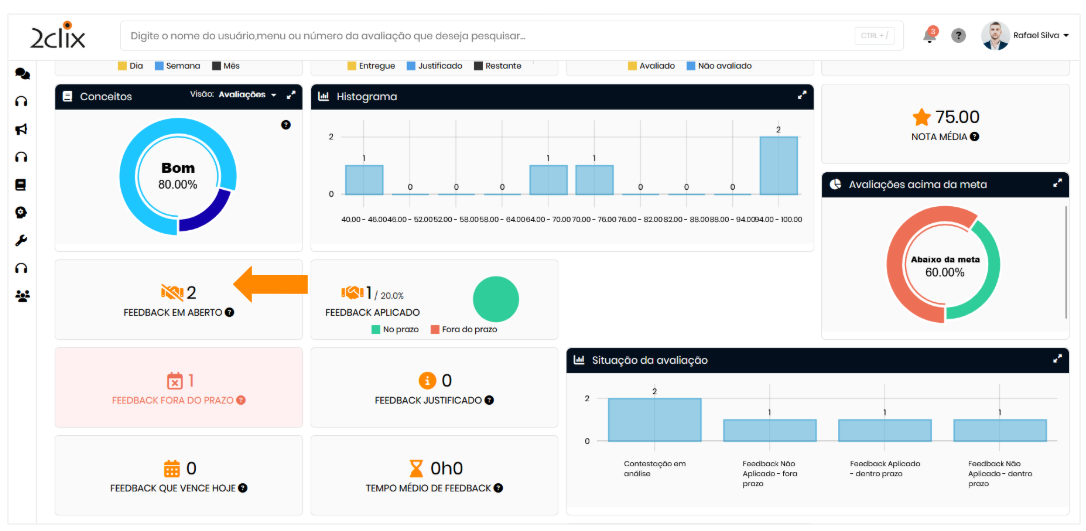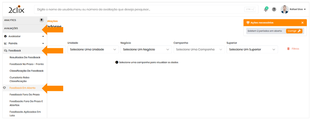 No menu lateral esquerdo, acesse: Avaliações > Feedback > Feedback em aberto.