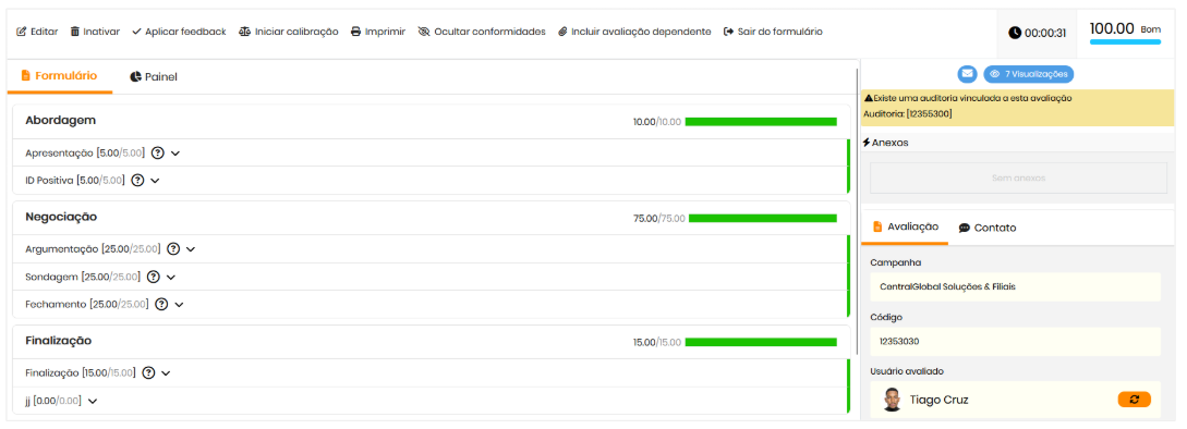 3. Acesse a aba de Formulário: Clique na aba Formulário para visualizar os detalhes da avaliação.