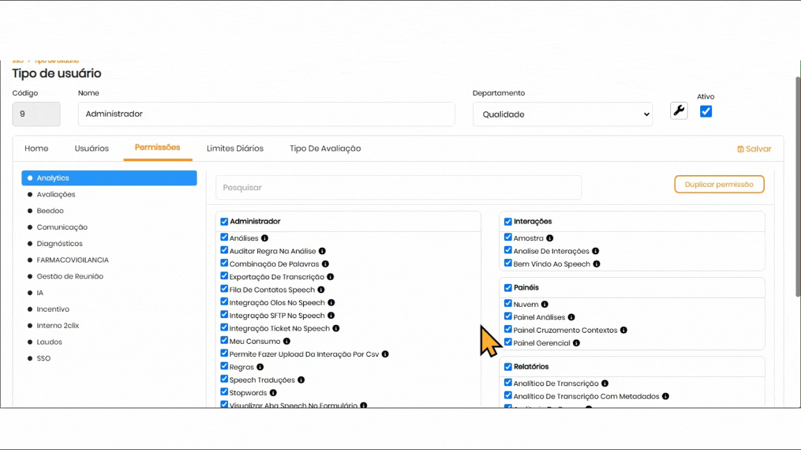 O Administrador pode configurar o acesso a relatórios e ações de contestações de acordo com a necessidade de cada usuário, permitindo maior personalização e controle.