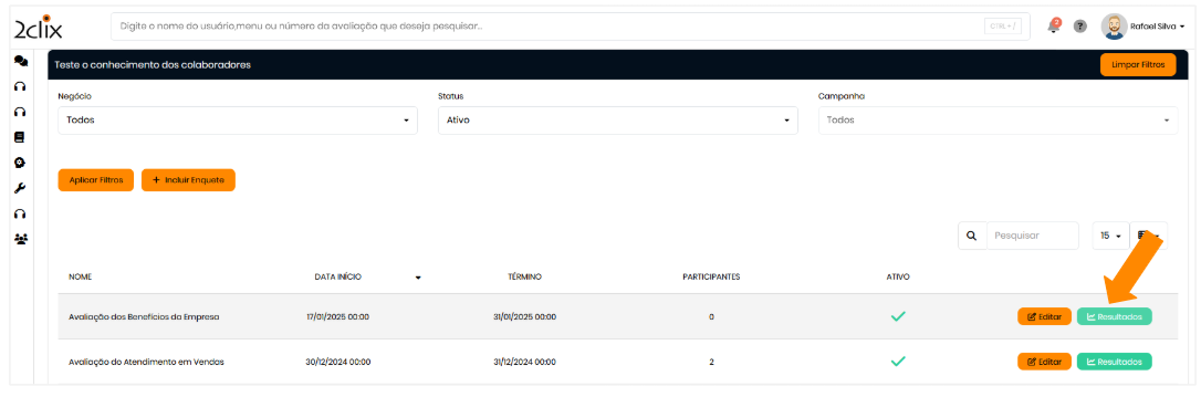 Localize a enquete desejada e clique em Resultados.
