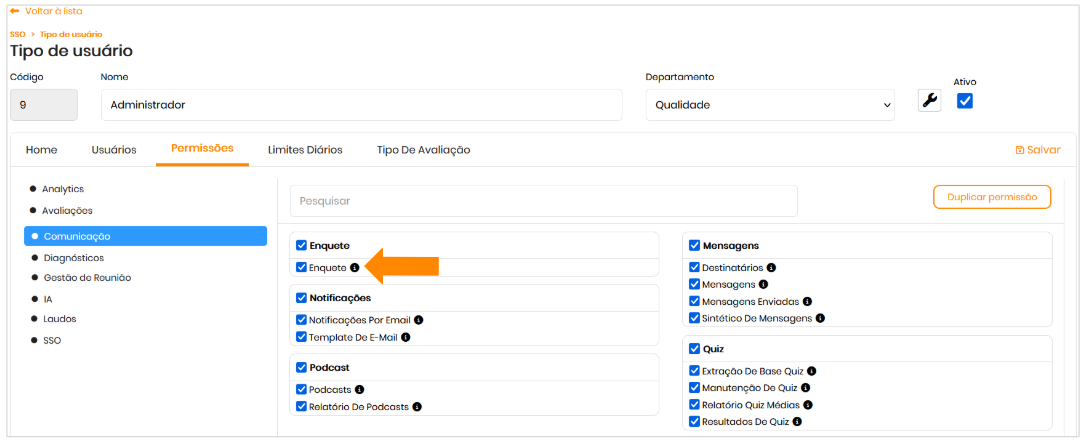 Para acessar esta funcionalidade, é necessário possuir as permissões abaixo: