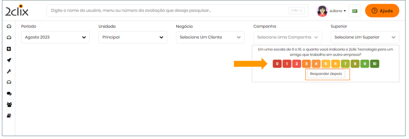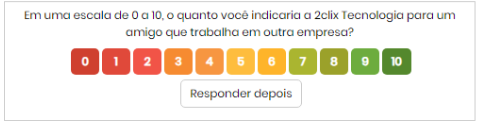 "Em uma escala de 0 a 10, o quanto você indica a tecnologia 2clix para um amigo que trabalha em outra empresa?"