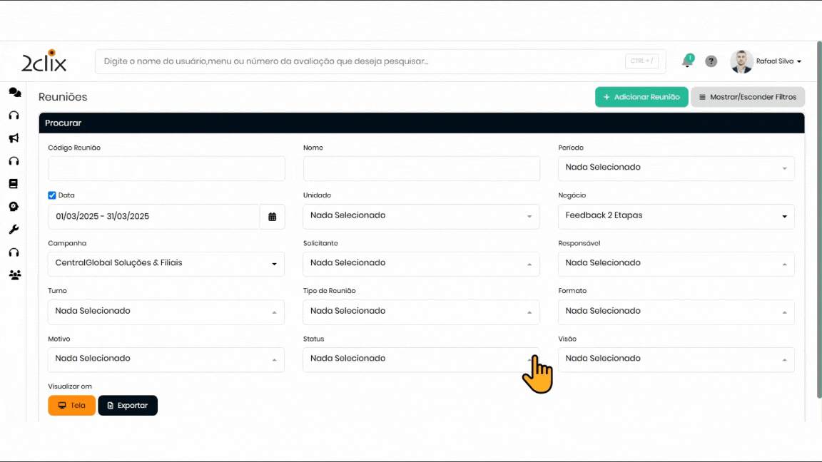 - Use os Filtros para localizar a reunião desejada e clique sobre ela.