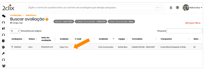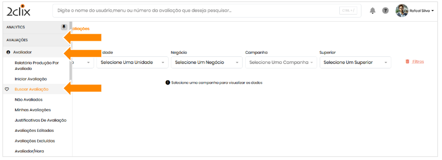 - Menu: Avaliações > Avaliador > Busca Avaliação.