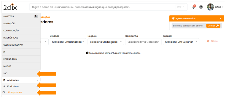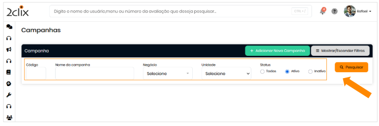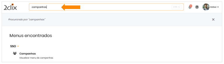 - Ou utilize o campo de busca digitando Campanhas.