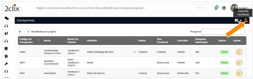 - Acione a opção Exportar Resultado para gerar um arquivo em formato Excel contendo todas as campanhas cadastradas.