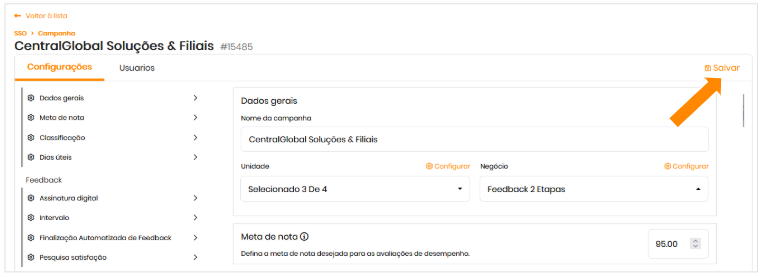 - Tipo do Feedback: formato de feedback associado à campanha: