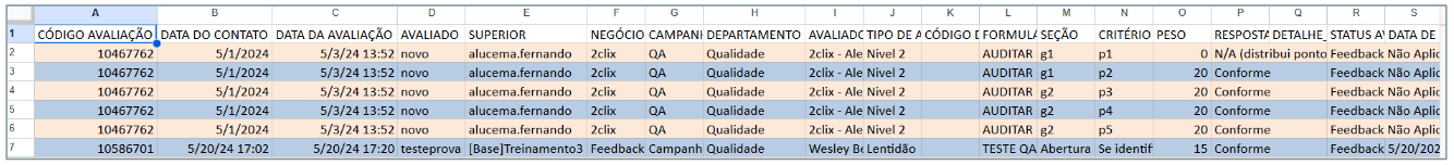 Veja abaixo um exemplo de relatório exportado para o Google Drive: