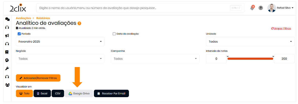Selecione Google Drive para enviar o relatório diretamente para sua conta.