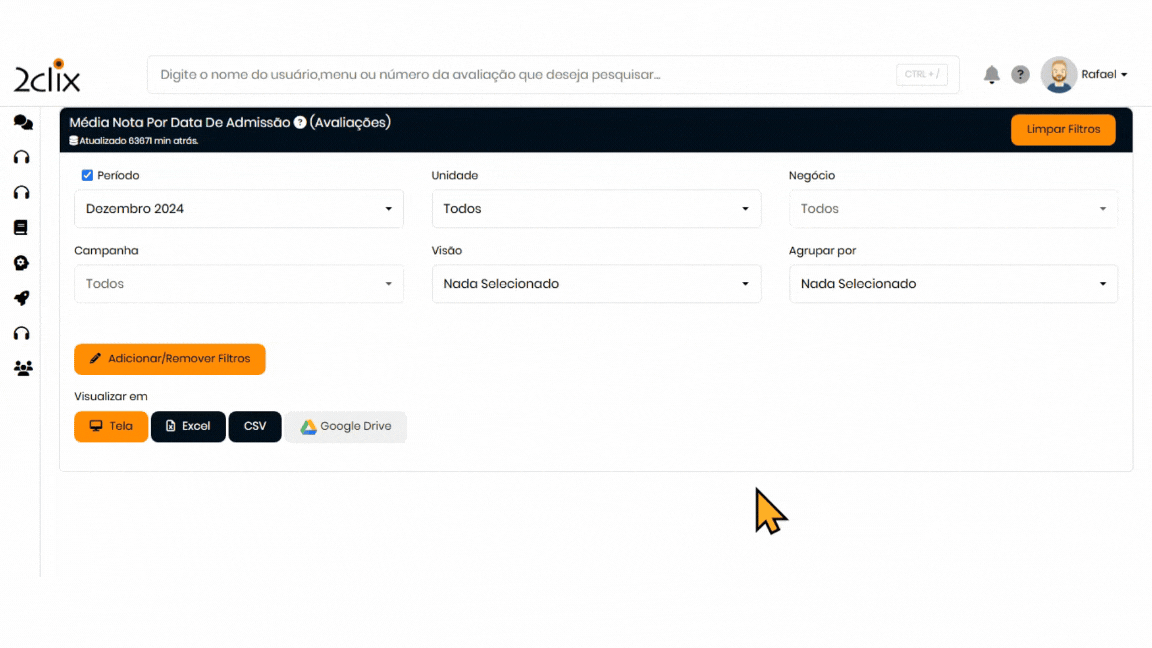 Selecione os filtros e clique em Tela para visualizar o relatório.