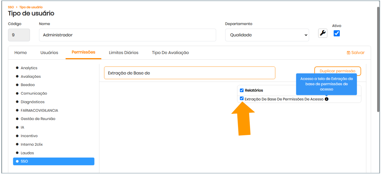 Para ter acesso a este recurso é necessário ter a permissão abaixo: Extração de Base de Permissão de Acesso
