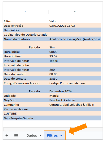 - Rastreabilidade e Transparência: Uma aba adicional será inserida na planilha com informações detalhadas sobre os filtros utilizados, assegurando total rastreabilidade e transparência nos resultados exportados.