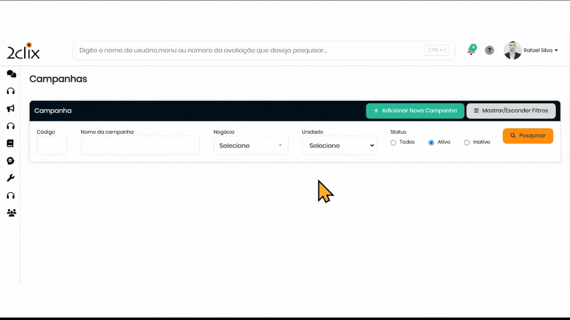 - Acione o menu: SSO > Cadastro > Campanhas;