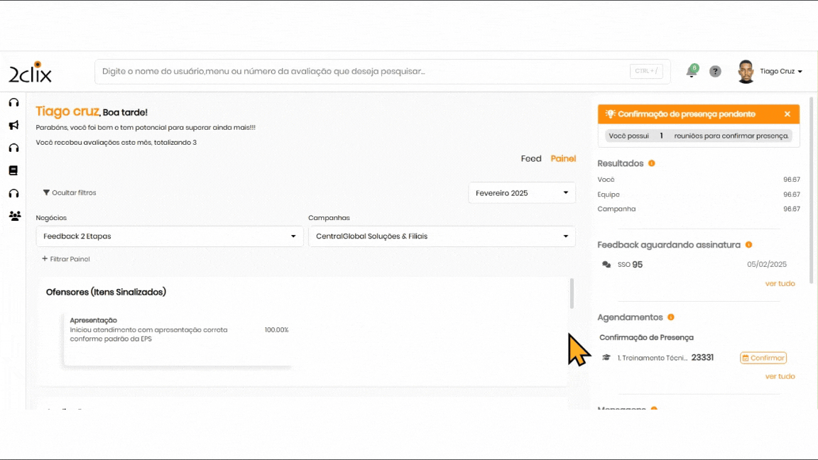 - Após o envio do feedback, será exibido o botão Avaliar na coluna Avaliação do Feedback no painel do avaliado;
