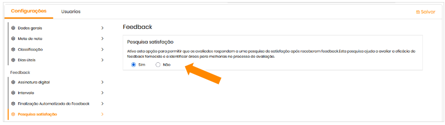 - Selecione a opção Sim para habilitar a funcionalidade (a opção Não é o padrão da plataforma);
