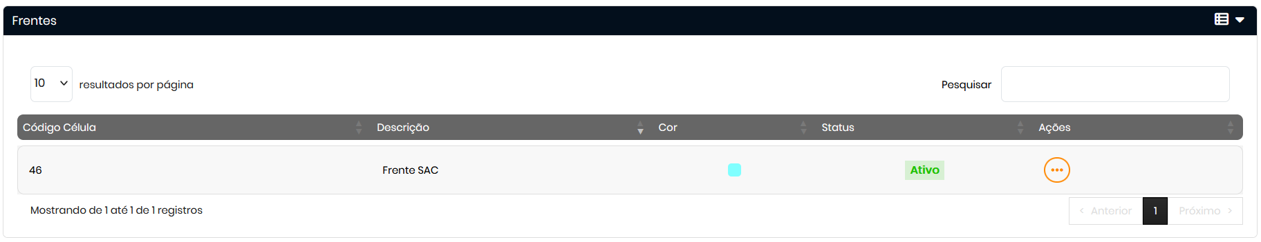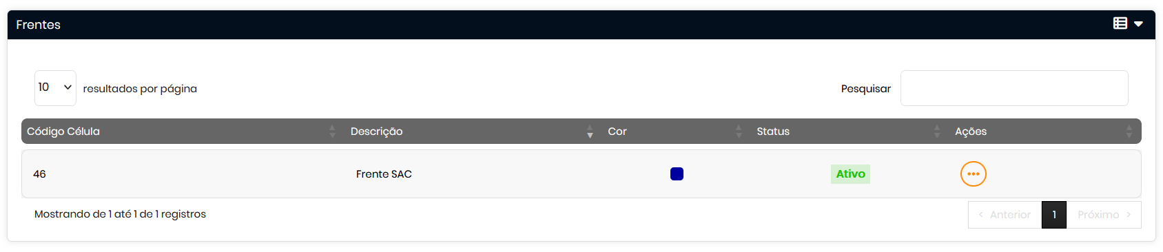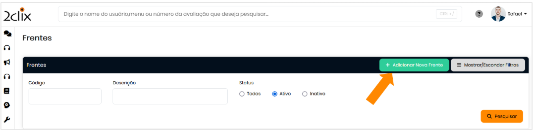 - Na tela de Cadastro de Frentes, você poderá: