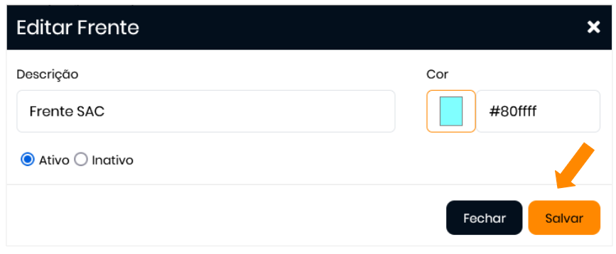 Para desativar uma frente, siga o mesmo fluxo utilizado para editar: