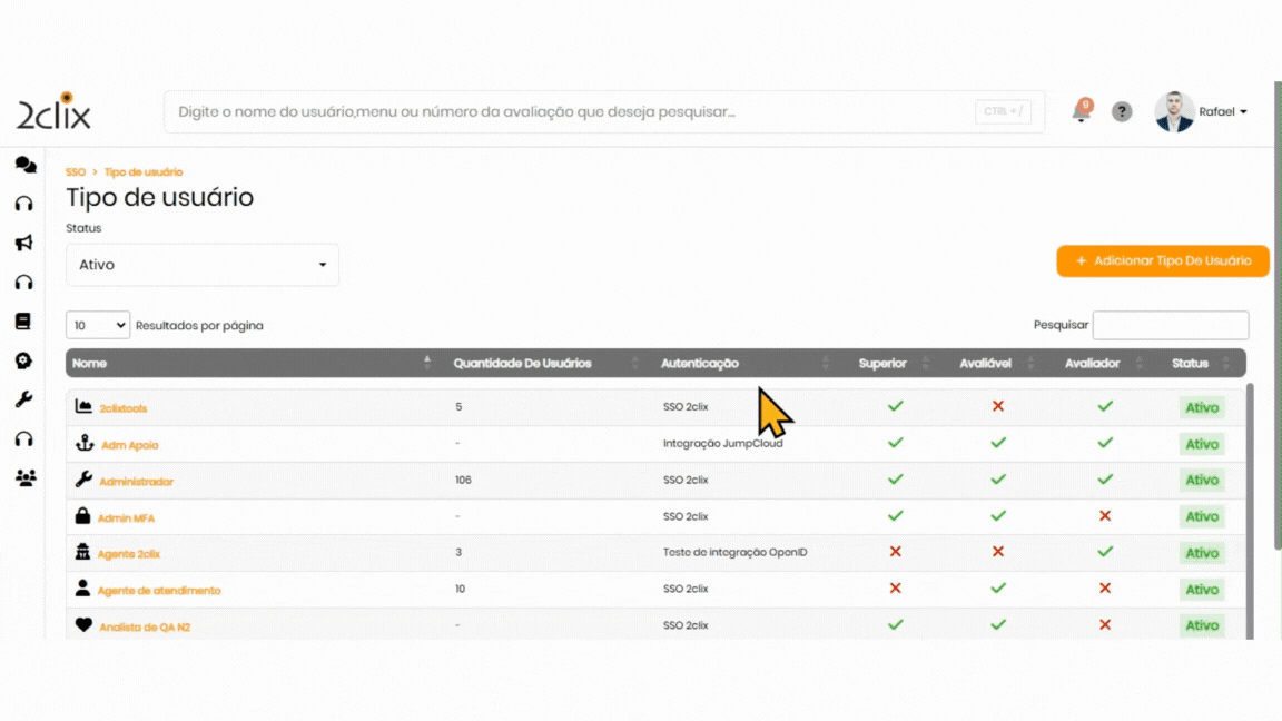 - Seleção do Tipo de Usuário: Clique no tipo de usuário que deseja habilitar o acesso externo.