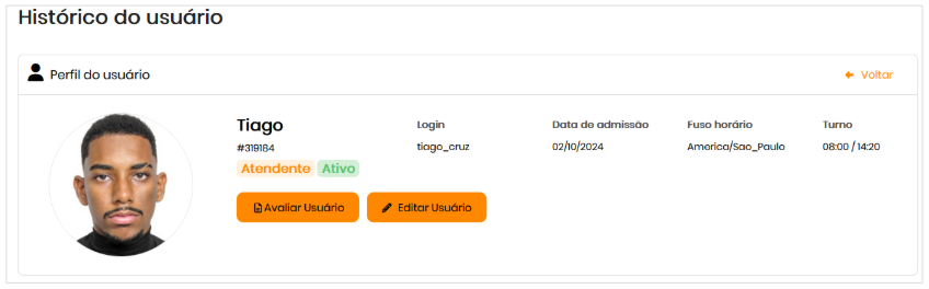 *Disponível apenas para perfis com a permissão 'Editar Usuário'.