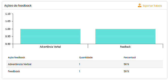 - Ação feedback: tipo de ação aplicada (exemplo: Feedback, Advertência Verbal);