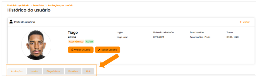 Abas disponíveis no Histórico do Usuário