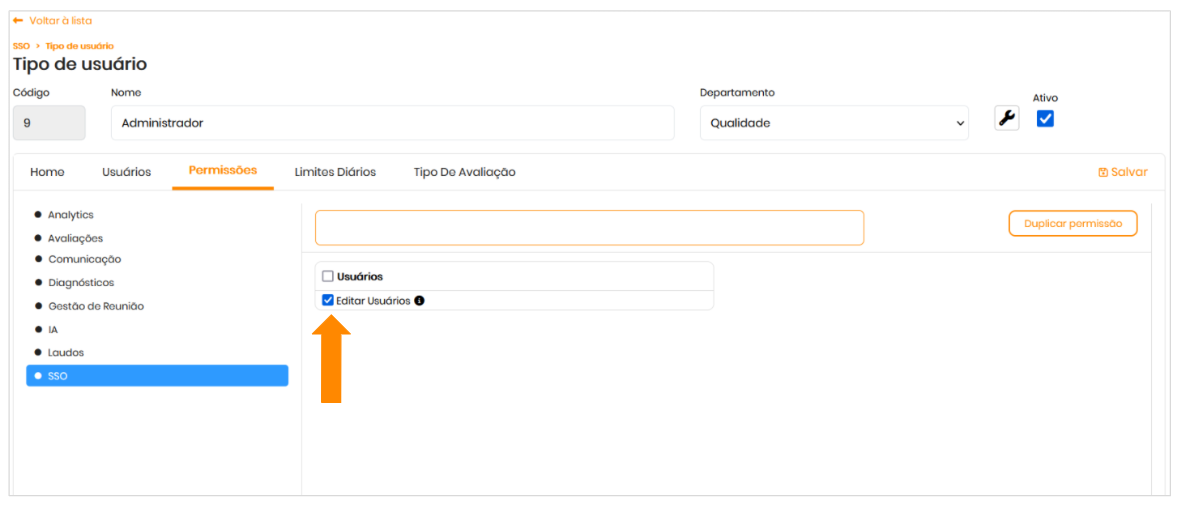 Ative a permissão de acesso Editar Usuário para o tipo correspondente.