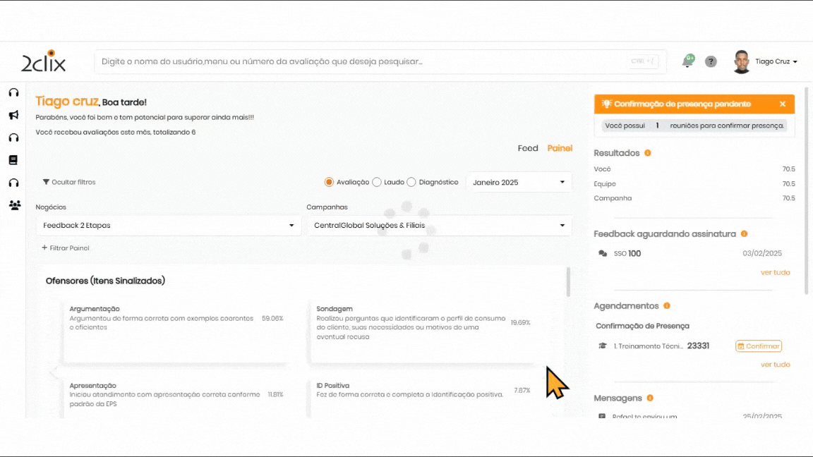 No campo de busca, insira o nome do avaliado.