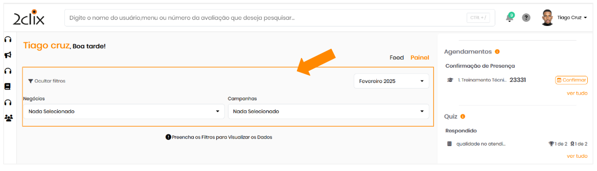 - Pelo Painel Indicadores : No gráfico de notas dos avaliados, clique sobre o usuário desejado para visualizar seu histórico.
