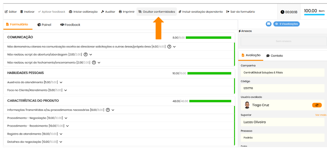Se precisar imprimir apenas os itens apontados como erro, selecione a opção "Esconder Conformidades" antes de concluir a impressão.
