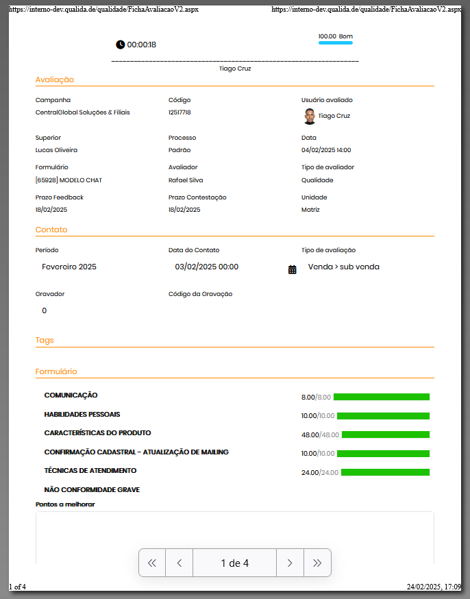 O documento incluirá todas as informações da avaliação e um espaço na parte inferior para assinatura, garantindo formalidade e validação do registro.